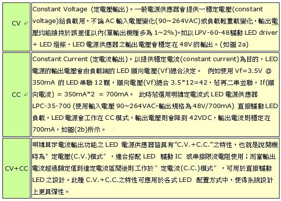 LED电源供应器规格中所提到的CV、CC、CV+CC是什么?